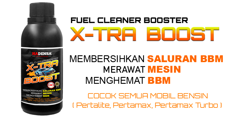 HADENSA X-tra Boost Fuel Cleaner Booster merupakan bahan additive yang ramah lingkungan dan berbasis Euro 4 yang mampu meningkatkan dan mengoptimalkan performa MESIN BENSIN (Pertalite, Pertamax, Pertamax Turbo).
